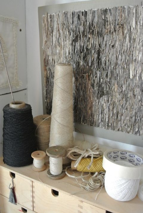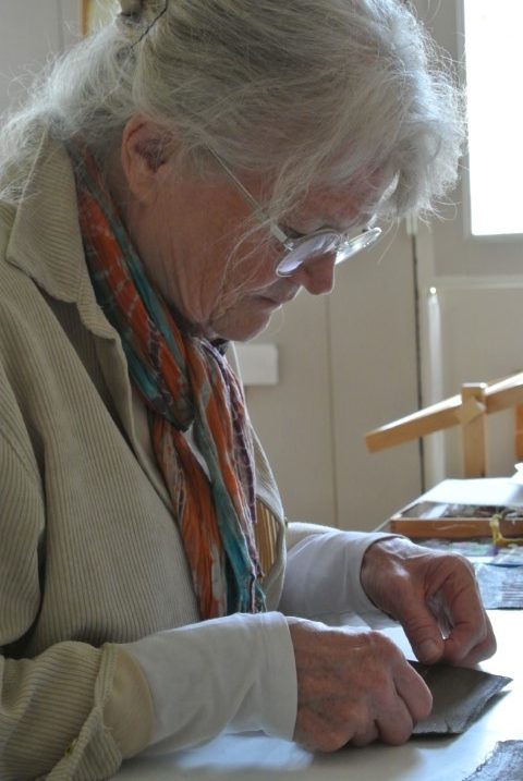Jet Brom, opgeleid als edelsmid, nu vooral werkend met textiel en papier, aangevuld met natuurlijke materialen. Geïnspireerd door haar omgeving, gebruikt ze vaak kwelder, wad en planten om haar werk te laten spreken. Het driedimensionale aspect en de textuur spelen daarbij een belangrijke rol.